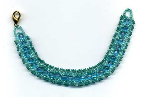 ![]() Woven blue and turquoise glass beads. Length 185 mm. |